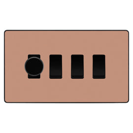 BG Evolve Polished Copper 4 Gang Switch 3x Trailing Edge LED Dimmer 1x Intermediate Custom Grid Switch