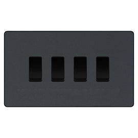 BG Screwless Matt Black 4 Gang Switch 1x Trailing Edge LED Dimmer 3x Intermediate Custom Grid Switch