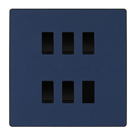 BG Evolve Matt Blue 6 Gang Custom Grid Light Switch with Back Box Included
