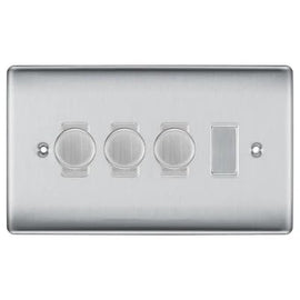 BG Nexus Brushed Steel 4 Gang Switch 3x Trailing Edge LED Dimmer 1x Intermediate Custom Grid Switch