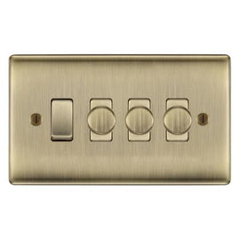 BG Nexus Antique Brass 4 Gang Switch 3x Trailing Edge LED Dimmer 1x Intermediate Custom Grid Switch