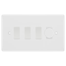 BG Nexus White Moulded 4 Gang Switch 1x Trailing Edge LED Dimmer 3x Intermediate Custom Grid Switch