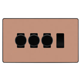 BG Evolve Polished Copper 4 Gang Custom Grid Switch 3x LED Dimmer 1x 2 Way