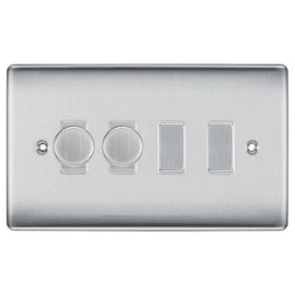 BG Nexus Brushed Steel 4 Gang Switch 2x Trailing Edge LED Dimmer 2x Intermediate Custom Grid Switch
