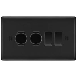 BG Nexus Matt Black 4 Gang Switch 2x Trailing Edge LED Dimmer 2x Intermediate Custom Grid Switch