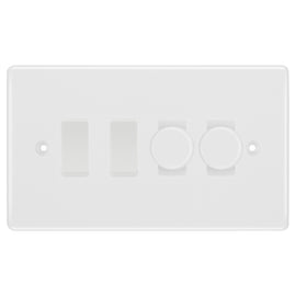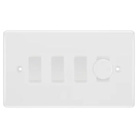 BG Evolve Pearlescent White 4 Gang Switch 2x Trailing Edge LED Dimmer 2x Intermediate Custom Grid Switch