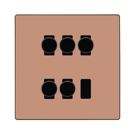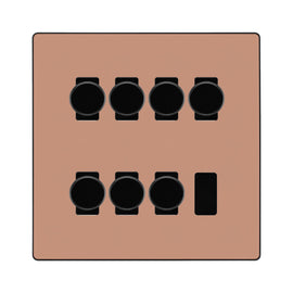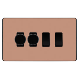 BG Evolve Polished Copper 4 Gang Switch 2x Trailing Edge LED Dimmer 2x Intermediate Custom Grid Switch