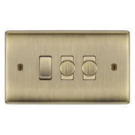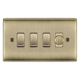BG Nexus Antique Brass 4 Gang Switch 1x Trailing Edge LED Dimmer 3x Intermediate Custom Grid Switch