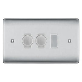 BG Nexus Brushed Steel 3 Gang Switch 2x Trailing Edge LED Dimmer 1x Intermediate Custom Grid Switch