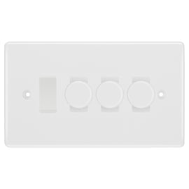 BG Evolve Pearlescent White 3 Gang Switch 2x Trailing Edge LED Dimmer 1x Intermediate Custom Grid Switch