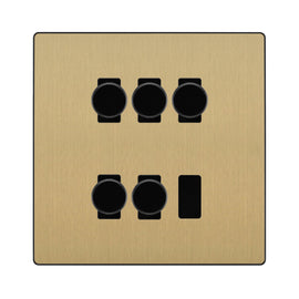 BG Evolve Satin Brass 6 Gang Trailing Edge LED Dimmer Custom Grid Switch
