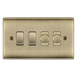 BG Nexus Antique Brass 4 Gang Switch 2x Trailing Edge LED Dimmer 2x Intermediate Custom Grid Switch