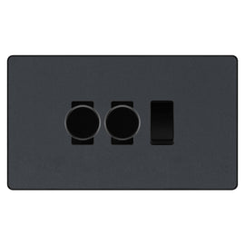 BG Evolve Matt Grey 3 Gang Switch 2x Trailing Edge LED Dimmer 1x Intermediate Custom Grid Switch