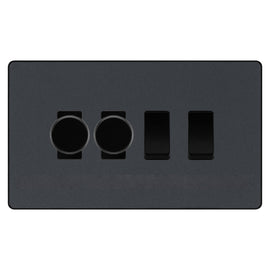 BG Evolve Matt Grey 4 Gang Switch 2x Trailing Edge LED Dimmer 2x Intermediate Custom Grid Switch