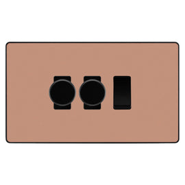 BG Evolve Polished Copper 3 Gang Switch 2x Trailing Edge LED Dimmer 1x Intermediate Custom Grid Switch