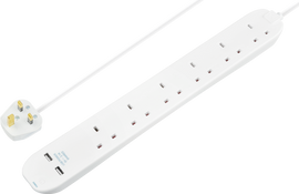 Masterplug SRGDSU62PW Socket Surge Protected Extension Lead with 2 USB Ports About Product: Six Sockets - allows you to connect six items safely into one outlet Socket Safety Shutters - prevents the insertion of foreign ob...
