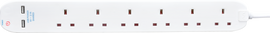 Masterplug 6 Gang / Way 1m Extension Lead + 2 USB Charge Sockets White BSNU110N About Product: Six Sockets - allows you to connect six items safely into one outlet Socket Safety Shutters - prevents the insertion of foreign...