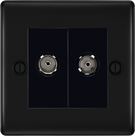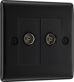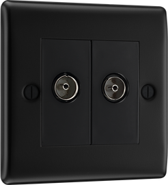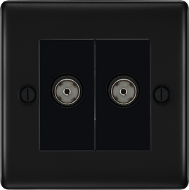 BG NFB63 Nexus Metal Matt Black Isolated Double TV Aerial Socket - Black Insert