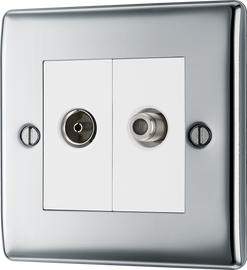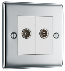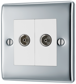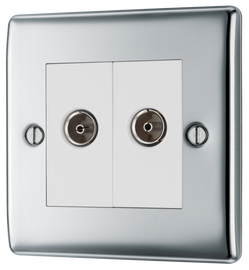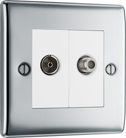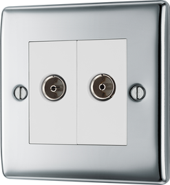 The BG Nexus Metal NPC66 is a 2 gang co-axial and FM socket, finished in Chrome. All the BG Nexus Metal accessories have a stylish modern, slim profile and have a lightly lacquered surface to help reduce fingerprint marks.