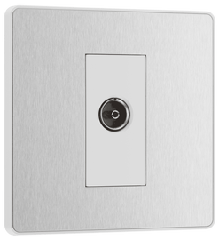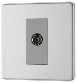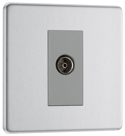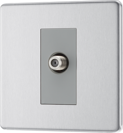 BG FBS62 Flatplate Screwless Isolated Co-axial Socket, 1 Gang Brushed Steel - Grey Insert