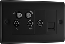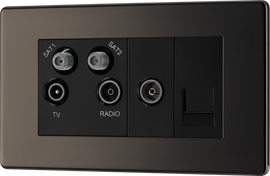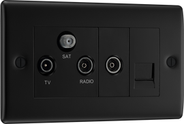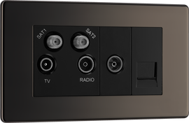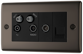 Nexus Metal Black Nickel Quad 1x TV 1x FM 2x Satellite 1x Telephone Screened Quadplex Socket Outlet