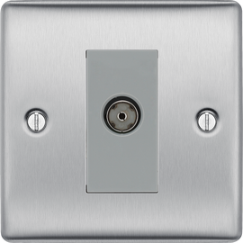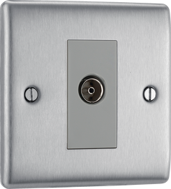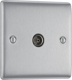BG Electrical Brushed Steel Single Co-Axial Socket, Rounded Plate