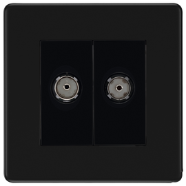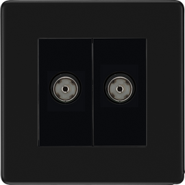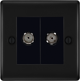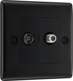 BG NFB65 Nexus Metal Matt Black 2 Gang Satellite & Co-axial Socket - Black Insert