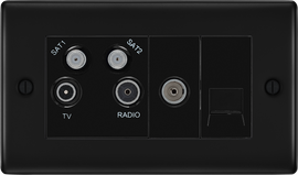 BG NFB68 Nexus Metal Triplex TV/FM/Sat Socket + Return & Tel. - Black Insert - Matt Black