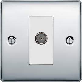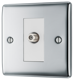 BG FPC64 Nexus Screwless Flat-Plate Satellite Socket, 1 Gang Polished Chrome White Insert