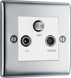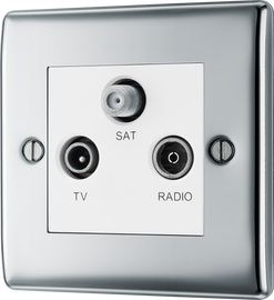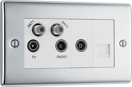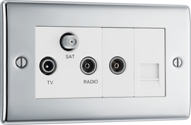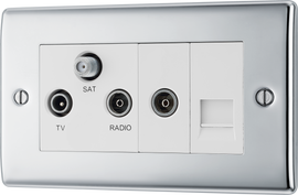 BG FPC69 Nexus Screwless Flat-Plate Quadplex TV/FM/Sat Socket (x2) + Return & 1 Gang Tel. - Screened Polished Chrome White Insert