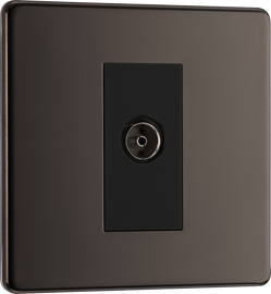 BG FLATPLATE SCREWLESS FBN62 Single Gang Isolated Co-Axial Socket - Black Nickel