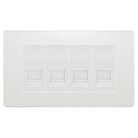 BG Evolve Pearlescent White 4 Gang RJ45 Cat6 Data Socket Outlet White Inserts The PCDCLRJ454W is a RJ45 Cat6A data outlet from the Evolve range from BG Electrical, finished in Pearlescent White with white inserts and built usi...