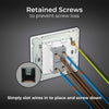 This BG Evolve Brushed Steel Intermediate 20A Edge to Edge Rocker Light Switch allows for more than two switches in a circuit where you need to control the same light from 3 different locations, such as at the top and bottom of the stairs and at the end of a hallway or landing. The low profile edge-to-edge rocker clips in to place once the base is installed for a screwless appearance, with a large touch surface for easy operation and Brushed Steel. Installation is fast and secure with clearly labelled captive backed out terminal screws.