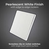 This BG Evolve Pearlescent White 2 Gang 2-Way 20A Edge to Edge Rocker Light Switch will operate one light in a room. The 2-way switching allows a second switch to be added to the circuit to operate the same light from another location (e.g. at the top and bottom of the stairs). This switch has edge to edge rockers and a low profile screwless flat plate that clips on and off, making it ideal for modern interiors.