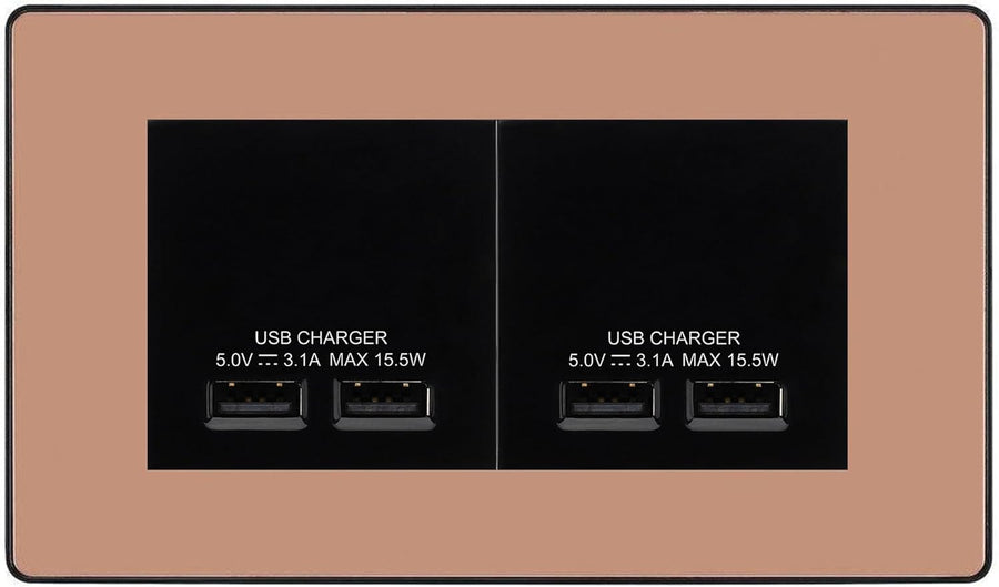 BG Evolve Polished Copper 4G Euro Plate with 2X USB-A Dual Chargers Black Insert